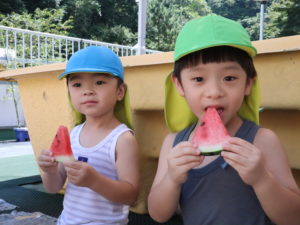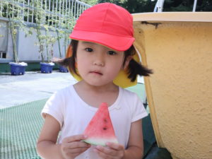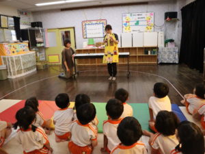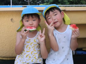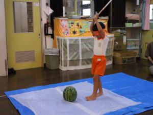 スイカ割りやエプロンシアター、クイズなどを楽しみました。